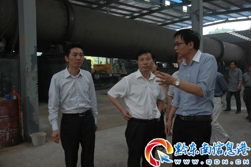 楊副書記(中)在縣長唐浩(左一)的陪同下視察奧捷碳素廠
