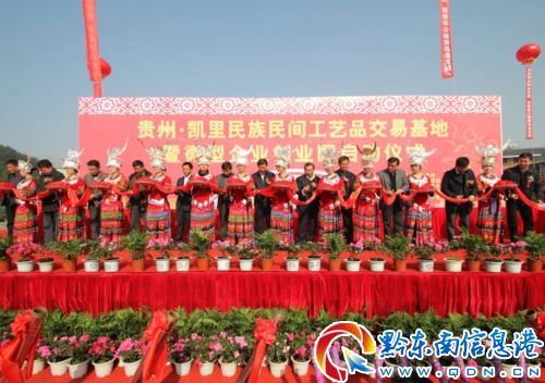 隨后,州市領導為貴州凱里民族民間工藝品交易基地暨微型企業創業園正式啟動進行剪彩活動。