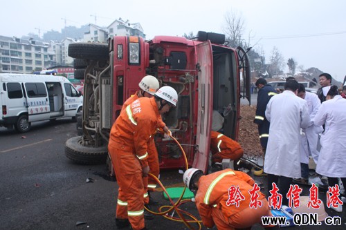 2012年1月5日,凱里市翰林華庭門口發生一起車輛側翻交通事故,造成1人被困。事故發生后,凱里市凱棉路消防中隊迅速出動,成功將被困人員救出。
