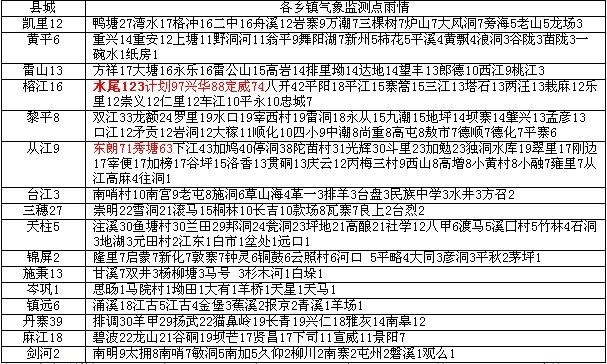 據州氣象局消息 根據全州244個氣象站監測顯示,4月28日14時~29日8時共有243個站點出現降水,其中水尾122.8mm1個站點降大暴雨,計劃96.7mm、興華88.2mm、定威73.6mm、東朗71.4mm、秀塘63.2mm5個站暴雨,15個站大雨,其余小到中雨,大雨和暴雨出現在榕江、從江、丹寨,注意預防都柳江流域暴雨山洪災害。州內10縣市進行防雹作業16次,無冰雹災害。具體雨情見下表及圖1: