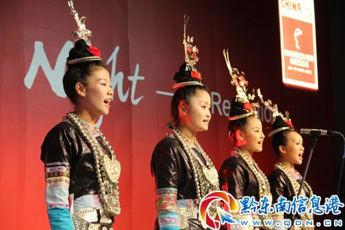 4月25日晚,由中國貿(mào)促會(huì)、中國工業(yè)和信息化部、中國文化部和中國駐德國大使館共同舉辦的“2012年漢諾威工業(yè)博覽會(huì)中國之夜貴賓招待會(huì)”在德國漢諾威展館會(huì)議中心1號(hào)大廳舉辦。德國下薩克森州州長麥克阿里斯特、中國駐德國大使吳紅波、漢諾威展覽公司董事局主席馮睿實(shí)、德國經(jīng)濟(jì)界和商業(yè)界代表、我駐德使領(lǐng)館工作人員、中國參展公司代表和媒體記者等150人出席。招待會(huì)上,清秀可人的來自中國貴州從江縣的侗族姑娘們身穿精美斑斕的民族服飾一亮相,就引起了觀眾們一陣驚喜,姑娘們唱起天籟般的侗族大歌,那純凈的嗓音展現(xiàn)了最具特色的中國民間音樂藝術(shù)、世界非物質(zhì)文化遺產(chǎn)——侗族大歌,觀眾們?cè)诿烂畹亩弊宕蟾杪曋校情g仿佛置身于山清水秀的世外桃源。