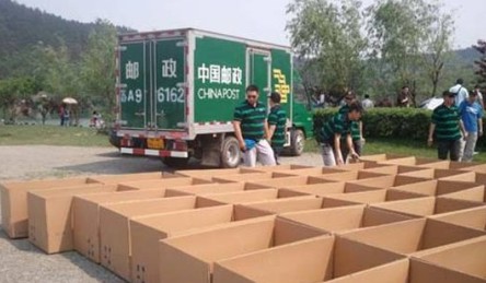 車友們在擺放用于郵寄的紙箱