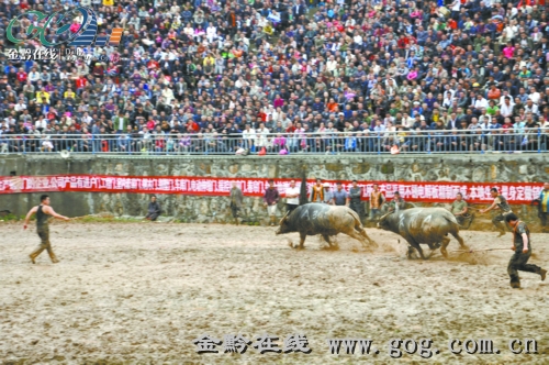 “云南5號”與天柱金鑫公司的“白牛王”第一場開戰,兩牛激戰不久,“白牛王”左眼突然意外受傷,影響其正常發揮。不到3分鐘,云南5號用角撬住它的喉部,刺破血管,鮮血直流,頑強的白牛王并沒有敗下陣來,堅持到了最后一秒鐘。