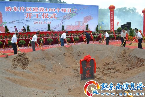 5月12日,黔東片區建設100個項目開工儀式在鎮遠縣白酒工業園區舉行,州委書記廖少華,州委副書記、州長李飛躍,州委常委、常務副州長馮仕文、州委常委、州委秘書長耿生茂,州人大常委會副主任唐斌,州政協副主席李正相,州政協副主席、鎮遠縣委書記蔣映生等主要領導出席開工儀式;州委有關部委、州政府有關部門、有關直屬機構,中央、省駐州有關單位負責人,州各新聞媒體有關負責人和新聞記者,鎮遠、岑鞏三穗縣黨委、政府主要負責人和縣四大班子分管聯系領導及正科級實職以上領導干部,各項目代表、企業代表、施工單位代表負責人和職工代表等參加開工儀式。儀式由州委常委、常務副州長馮仕文主持。