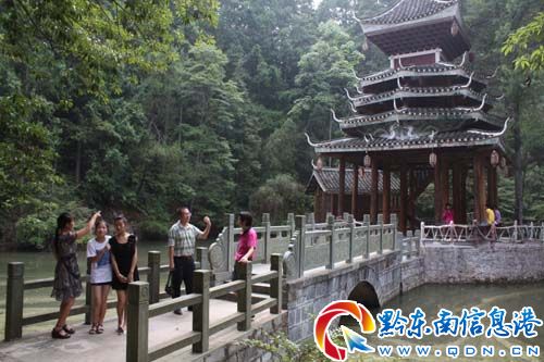 春蕾省級森林公園所在地貴州錦屏以“杉木之鄉”而享譽全國,據史料記載,錦屏縣人工造林的歷史已有500余年,明永樂時的錦屏杉木即為皇木用于北京皇宮建設。春蕾省級森林公園是杉木之鄉中的一塊綠色氧吧,綠色的山林與古樸的鄉野交相輝映,給人展示一種無窮的原生態魅力。是錦屏縣以松杉用材林為主體的林業基地,也是一個中外游客集體閑、避暑、野營、旅游、度假的森林旅游勝地。圖為初夏游客在春蕾省級森林公園仙鵝池休閑亭觀光休憩。(石福濤)