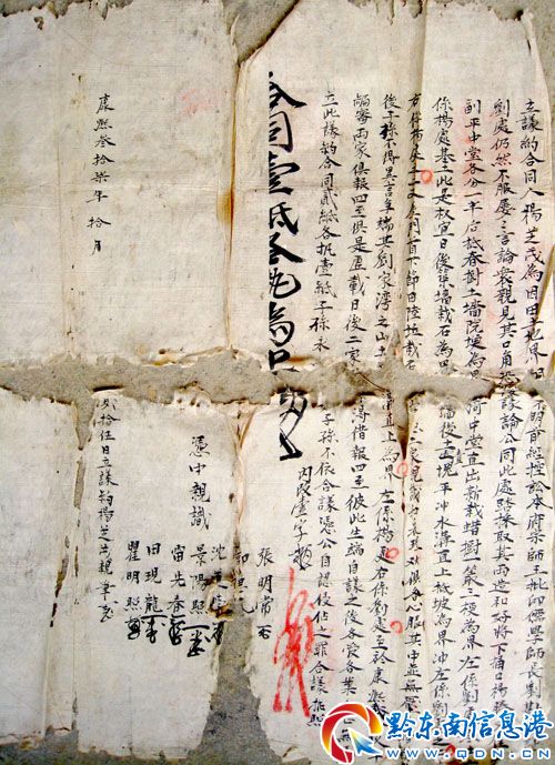 數量大。據初步了解,散存民間的各類契約、稅訖等古籍文書在全縣11個鄉鎮都有發現,而且數量較多,保守估計有五萬多件。僅在大有鄉木召村地步坎自然寨,就發現清朝康熙三十七年到民國三十五的各種文書300余件。
