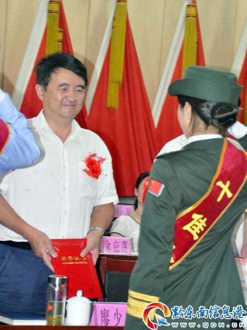 5月21日,貴州省黔東南州婦女第九次代表大會在凱里隆重開幕。來自全州各條戰線、各行各業的326名婦女代表和26名特邀代表,承載著推動婦女事業發展的重任,歡聚一堂,共商改革發展大計,共謀婦女進步事業,共繪黔東南和諧發展的美好環境。會議隆重表彰了全州婦女工作中涌現出來的先進集體和個人,黔東南州公安消防支隊司令部辦公室秘書吳青玲榮膺全州“十佳女警”榮譽稱號,受到州四大班子領導親切接見,黔東南州委書記廖少華親自為其頒獎。