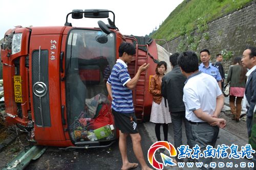 5月23日14時30許,一輛載滿葡萄的貨車行駛至滬昆高速凱麻段鵝山沖大橋時突然側翻,所幸無人員傷亡。事故造成該路段交通暫時中斷,交警部門聞訊趕到現場,并采取相應措施確保交通在短時間內恢復正常。事故正在進一步調查之中。(凌忠云)