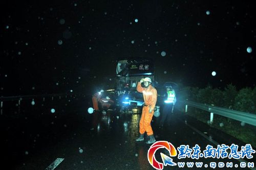 據介紹,5月23日凌晨4時12分,三穗縣消防大隊接到報警電話稱,滬昆高速公路三穗境內張家灣大橋處發生交通事故,有人員被困……