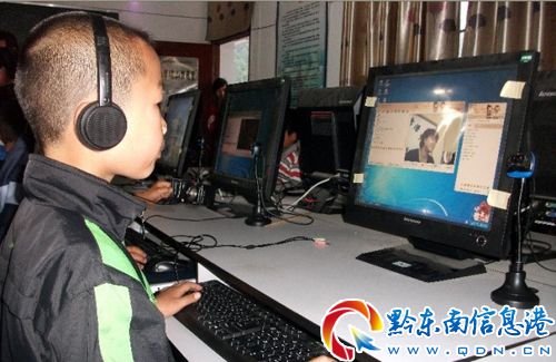 在“六·一”國際兒童節來臨之際,貴州麻江縣教育部門利用便捷的網絡通訊優勢,在各校計算機教室內開設“親情聊天室”,讓留守兒童與父母在網絡上進行面對面的視頻對話,以解彼此的相思之苦(圖為麻江縣西部大山深處的壩芒小學的留守兒童在“親情聊天室”里與父母在網絡上進行視頻聊天的情景)。