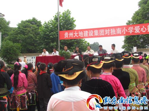 5月31日,臨近一年一度的“六·一”國際兒童節,貴州大地建設集團不辭勞苦來到雷山大塘鄉獨南小學開展獻愛心捐贈活動,雷山縣副縣長張妤及鄉有關領導出席捐贈儀式。