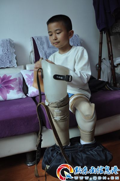 羅森不麻煩父母,總是自己穿假肢。