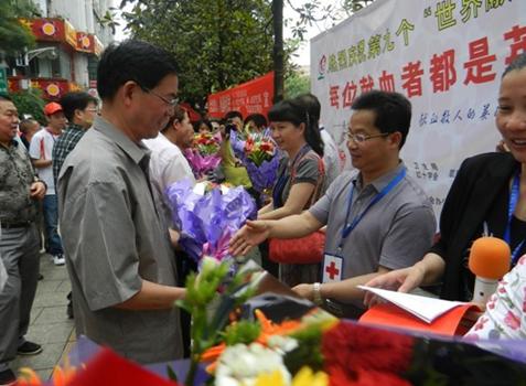 據黔東南州人民政府網消息 2012年6月14日是第9個“世界獻血者日”,我州在凱里舉行了隆重的慶祝活動。州、市衛生部門和紅十字會領導出席慶祝活動儀式,州人民政府副秘書長雷鎮瓊主持,貴州省電子信息職業技術學院、凱里學院、黔東南州職業技術學院的志愿者代表和獲得無償獻血奉獻獎的代表參加活動。