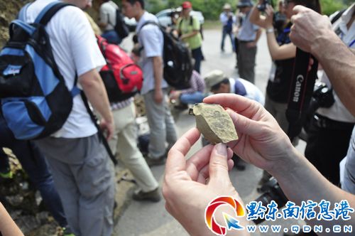 6月13日至15日,來自中國、美國、瑞典等14個國家的82位地質專家到黔東南州丹寨縣南皋鄉三灣剖面,臺江縣黔嶺國家地質公園博物館、革一鄉西南村剖面,劍河縣五河、八郎烏溜坡、交板剖面考察。專家們通過對該地層進行系統考察研究,發現這里的寒武系凱里組地層不僅出露良好,在剖面中還發現大量保存完整的凱里生物群化石分子。