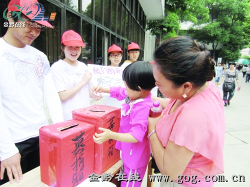 經過系里批準,影像系的300多個同學扭成了一股堅實的力量,在貴醫附院和貴陽醫學院兩個地方安設5個募捐點,從6月13日起,每天只要是沒課,同學們輪流來到愛心募捐點為他湊款。