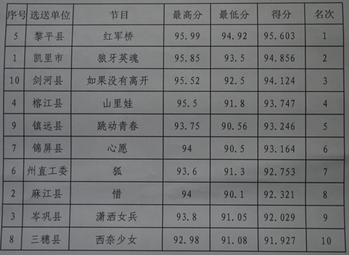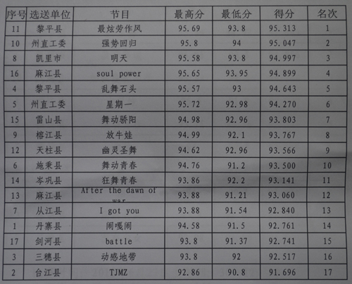 2012多彩貴州黔東南賽區街舞、現當代舞、國標舞半決賽成績如下: