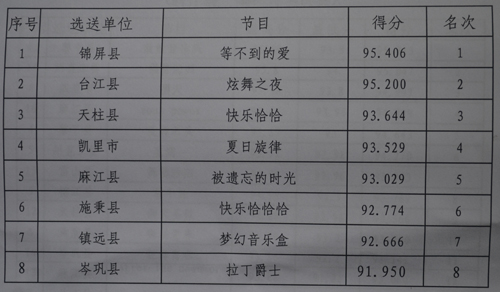經評委仔細斟酌、嚴格打分,監審組嚴格監審,最終,來自黔東南州各縣市、州直部門等選送單位的參賽節目經過激烈角逐,黎平縣街舞、現當代舞雙喜第一。(文筱晟)