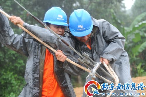 6月26日,榕江縣境內遭受強大暴雨,部分鄉鎮受到不同程度的洪災。榕江電網有3條10千伏線路和1條35千伏線路停電,導致15個變臺3000多戶人家停電。榕江供電局立即啟動防洪防汛搶險應急預案,組織30多名搶修人員分成5個組冒雨分別對各條線路進行搶修,立即恢復線路正常運行,確保客戶正常供電。