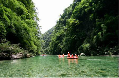 7月初開漂的萬盛黑山谷漂流,以其優越的峽谷地貌帶給漂流愛好者們以驚喜。黑山谷漂流接待中心設在黑山谷景區北門入口,游客需在此統一坐車前往漂流地,約7分鐘車程。黑山谷漂流總長3.8公里,高低落差達160米,讓你在每段漂流過程中不斷挑戰心跳,釋放激情。由于身處黑山谷這塊山水靈秀的寶地,漂流河段沿岸有大量造型逼真、形象生動的山石地貌,大大小小的瀑布傾瀉而下,玫紅色、黃色、白色的山花鑲嵌其中,形成了一幅動人的畫卷。在40分鐘左右的漂流過程中,可領略各種河灘,或湍急,或平緩,充分挑戰你的冒險精神。到了平緩的河段,還可以把橡皮艇停靠在旁邊,與朋友打水仗、賞風景。結束漂流后,不妨順道去黑山谷、龍鱗石海游玩,夏天變得無限精彩。