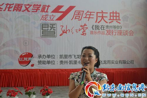 7月21號,飛龍雨文學社成立四周年慶典暨孫紅鶯音樂作品發行座談會在凱里市隆重舉行。