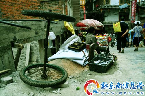 8月5日上午,記者從凱里小十字西側的一個岔道拐入,轉兩個彎,就到“淘寶街”了,這是一個狹長而有坡度的街面,最窄的地方只能2米,轎車通過都很困難……這樣的街面信息告訴人們,這是一條具有一定歷史的街道。