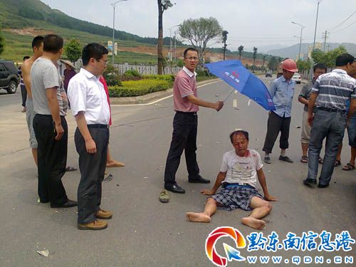 8月11日中午13時15分許,仰阿莎大道上馬石寨路口發生一起摩托車與轎車碰撞事故,事故發生時,恰被州委副書記、代州長廖飛調研回凱里途中看到,廖飛當即下車現場指揮搶險救援,同時調度110、120及時趕到現場進行搶救。(張鴻)
