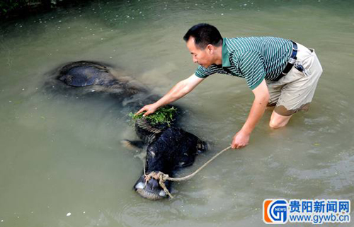 據了解,勇銳不僅是個飼養斗牛的行家,在當地還是一個著名的斗牛比賽解說人,比賽場上其詼諧幽默解說,常常博得看客們捧腹大笑。前不久,在斗牛界享有一定聲譽的勇銳,被凱里市評為市級非物質文化遺產斗牛惟一傳承人。