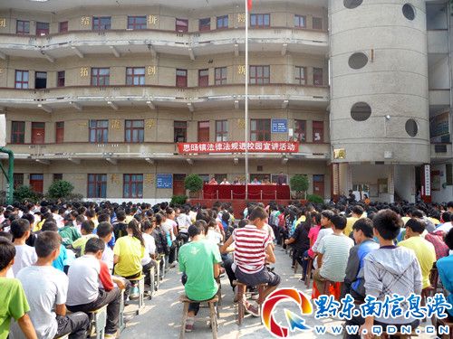 9月20日下午,岑鞏縣思陽鎮分管安全工作負責人、派出所負責人等組成“法治安全進校園宣傳小分隊”來到思旸中學,給全校1000余名學生上了一堂生動的法治安全課。