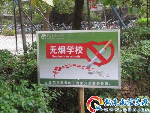 為開(kāi)展好這項(xiàng)工作,學(xué)校首先形成了《雷山二中無(wú)煙學(xué)校創(chuàng)建實(shí)施方案》,按照創(chuàng)優(yōu)環(huán)境創(chuàng)建開(kāi)展工作;其次學(xué)校要求全體師生擔(dān)任控?zé)熜麄鲉T、控?zé)煴O(jiān)督員,自覺(jué)對(duì)學(xué)校各區(qū)域的吸煙情況進(jìn)行巡查和監(jiān)督;第三是在校園內(nèi)外專門(mén)樹(shù)立無(wú)煙校園警醒師生和外來(lái)人員禁止吸煙等方式。通過(guò)此項(xiàng)工作的開(kāi)展,為該校增添了一道亮麗的風(fēng)景線,形成了學(xué)校教育的一張名片。為此,該校2000余名師生也變成了無(wú)煙公民。(李忠澤 吳呈金)