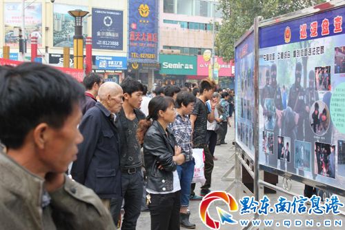 此次大型宣傳活動以防范多發(fā)性詐騙為重點,市公安局針對近年來凱里市多發(fā)的電信詐騙、丟包詐騙、迷信詐騙、婚姻詐騙等案件內(nèi)容制作了7塊14面宣傳展板,以人民群眾喜聞樂見的卡通宣傳畫形式揭露詐騙分子慣用的詐騙手段,宣傳有效的防范措施。以近年來凱里市發(fā)生的多起詐騙案例為教材,揭示詐騙案件的巨大危害,警醒市民。同時,向市民展示了市公安局打擊“兩搶一盜”成果的20塊宣傳展板,詳細介紹了市公安局今年以來開展打擊“兩搶一盜”違法犯罪斗爭的輝煌戰(zhàn)果。