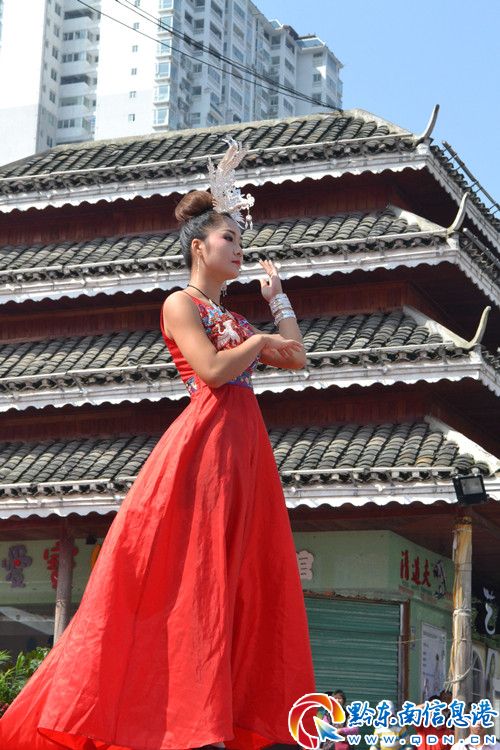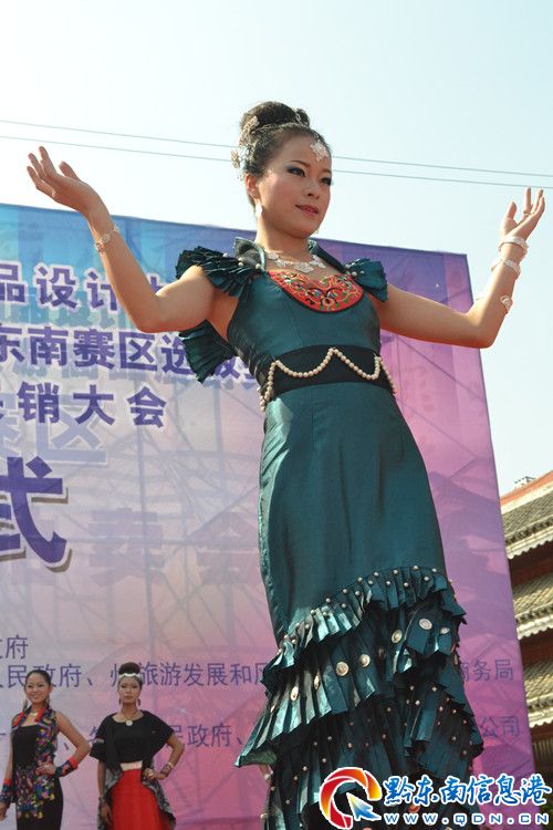 9月29日,黔東南州“兩賽一會”現場“歌舞飄香”,民族服裝T臺展示凸顯苗侗特色。(文筱晟)