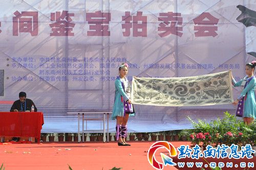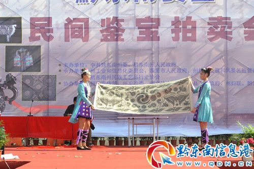 9月29日,“兩賽一會(huì)”黔東南民族文化收藏品、工藝精品品鑒拍賣會(huì)在凱里市萬(wàn)博廣場(chǎng)舉行。拍賣會(huì)現(xiàn)場(chǎng),來自全國(guó)各地的淘寶商人及民族文化收藏愛好者匯聚于此,場(chǎng)面隆重,紛紛對(duì)拍賣會(huì)上的苗族刺繡、苗族銀飾、思州石硯、苗族蠟染等黔東南民族文化收藏品以及金絲楠木煙斗和中國(guó)書畫等進(jìn)行搶拍。(文筱晟)