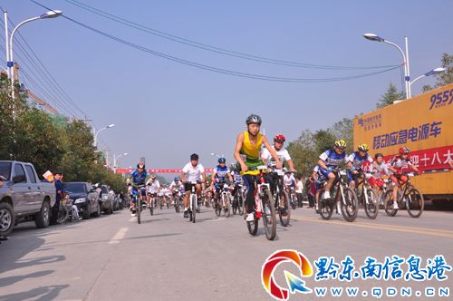 此次參賽的98名運動員中,有女選手7名。他們從今年剛投入使用的天柱縣城金鳳廣場出發,一路經過該縣鳳城、社學、邦洞等鄉鎮,騎車登上海拔900余米的金鳳山,全長13公里,猶如一條銀色的彩帶在山間飄舞,給節日的天柱增添了青春與活力。