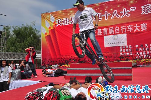 此次比賽,云集湘黔桂三省(區)10余個縣山地自行車高手,對推動民族體育競技起到了積極的推進作用。(楊仁海)