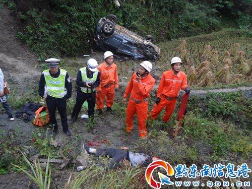 2012年10月5日16時46分黃平縣消防大隊接到群眾報警稱:老魚莊大橋發生交通事故,一輛從凱里方向駛來的皮卡車和一輛從黃平縣駛來的長城越野車相撞,相撞后長城越野車由于路面濕滑導致側滑下了五十米的深溝里,望你們前來救援。接到報警后,黃平大隊出動1輛搶險救援車和7名官兵,16時53分達到現場,成功救出一名被困員,而后又把深溝里另一名死者遺體送到了救護車并把現場移交給了交警,車禍導致一死三傷。(黔東南州支隊)