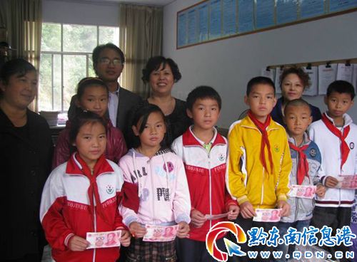 在雷山縣婦聯的牽引下,雷山縣留守兒童得到浙江省慈溪市婦聯的關注,并以此牽線搭橋到勞秋娣等慈溪市愛心人士為雷山留守兒童捐資助學的善舉。鐘定超此行來到桃江小學、永樂中學和永樂小學,每到一所學校,鐘主席親切的拉著孩子們的小手噓寒問暖,并轉達了勞女士等愛心人士的殷切期望,鼓勵留守兒童要努力學習,用優異的成績回報愛心人士和社會,不辜負愛心人的愛心。同學們也暗暗下定決心,發奮學習,用優異的成績來回報關愛我們的愛心人士。