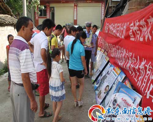 在宣教活動(dòng)中,現(xiàn)場(chǎng)懸掛《岑鞏縣“文明交通行動(dòng)計(jì)劃”宣傳進(jìn)農(nóng)村》、《“牽手平安行”赴村寨開(kāi)展面對(duì)面的道路交通安全教育活動(dòng)》等大型橫幅標(biāo)語(yǔ),展出《岑鞏縣道路交通安全警示教育圖展》圖片,向群眾發(fā)放宣傳教育資料。