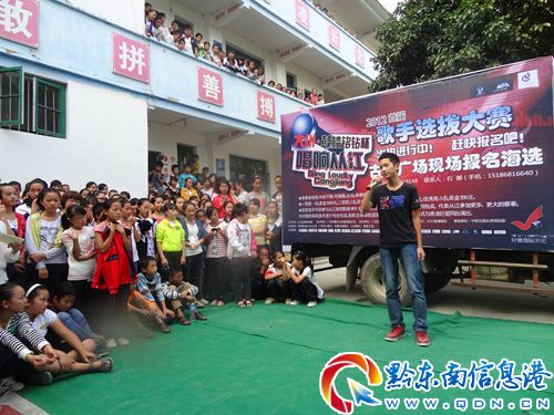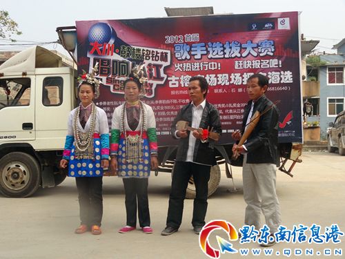 10月14日下午,由從江縣委宣傳部主辦,廣州好壹文化傳播有限公司承辦,廣西玉林市一帆演藝有限公司協辦,貴州大川房產冠名的2012首屆大川•鼓樓銘鉆杯“唱響從江”歌唱大賽十大賽區的海選在該縣停洞鎮圓滿落下帷幕。此次海選自10月1日以來進行了14天,分別在全縣各鄉鎮、學校陸續開展,得到了眾多選手的積極參與。據悉,參加海選的歌手超過了400名,經過十余天的激烈角逐,共有120名入圍選手,他們將于10月20日在從江鼓樓廣場舉行預選賽。(石娜)