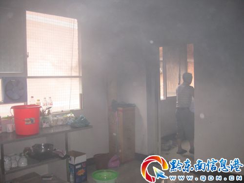3日中午12時許,記者路過陽光巷時,看見四樓一間房屋內冒出一團團濃煙。記者在現場看到,事發房屋是兩個通間的房屋,兩間房間都還迷漫著濃煙,一間的東西全部被燒毀,另一間因搶救及時,而沒有受損。