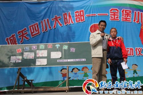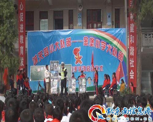 為辦好這次交流活動,城關(guān)四小精心組織,針對金堡鄉(xiāng)是民族村寨、較偏遠(yuǎn)村寨,村民交通安全意識普遍淡薄的情況,為強(qiáng)化學(xué)生交通安全意識,促進(jìn)學(xué)生文明交通行為的養(yǎng)成,決定以“我和交通安全有個(gè)約定”主題班會形式進(jìn)行交流學(xué)習(xí)。期望通過以點(diǎn)帶面,拉動整個(gè)金堡鄉(xiāng)人民群眾交通安全意識的提高。為此,城關(guān)四小還特別邀請了縣公安局交警大隊(duì)民警一同前往,為孩子們上一堂交通安全課。