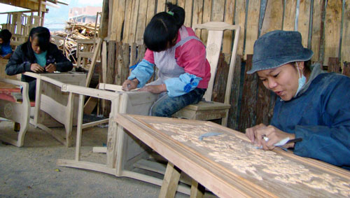11月7日,筆者走進錦屏縣誠意家具廠看到,工人師傅們在簡易的廠棚里趕制實木雕刻家具。“我廠準備參加本月中旬在凱里舉辦的展銷會,展品主要有辦公桌椅、沙發(fā)、大圓桌、屏風等”廠長楊昌清如是說。據(jù)了解,該廠能順利建廠投產(chǎn),主要得益于政府的引導和資金的扶持。“現(xiàn)在我們廠能解決20人的就業(yè),學徒工月工資保底1000元,包吃住;師傅月工資均在3000元以上(按熟練程度工資面議)男女不限”,一吳姓領(lǐng)班師傅這樣說。