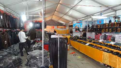 11月19日晚,華燈初上,筆者走進“中國•從江第九屆原生態(tài)侗族大歌節(jié)暨名優(yōu)特商品服裝展銷”現(xiàn)場,展棚內(nèi),客商有的正在整理柜臺、有的在掛服裝、有的在擺放鞋子,老板們個個正忙得不亦樂乎。