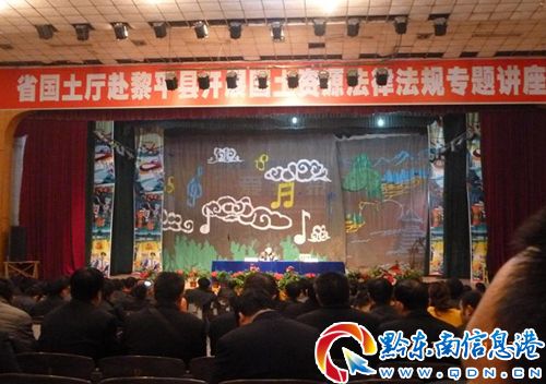 11月13日上午,貴州省國土資源廳在黎平縣舉辦了一期國土資源法律法規專題講座。州人大副主任、縣委書記楊俊,縣人大主任劉青等縣領導參加,講座由縣委常委,常務副縣長歐大興主持,該縣25個鄉鎮、120個機關單位和部分企業、村居委會共1200余名干部職工參加了此次培訓。