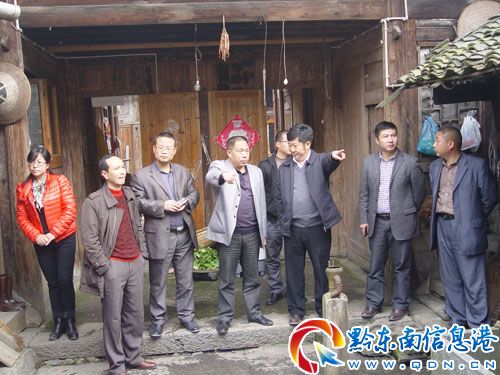 尤成華副縣長聽了戶主目前存在的困難和王明相政協(xié)副主席匯報后,對目前隆里古城重點打造明清保存下來典型民居措施所取得的成績作了充分肯定,就目前在保護的問題上作了詳細要求,一是對隆里古城明清保存下來的典型民居要加大保護措施,干部要深入農(nóng)戶與群眾交心談心,了解實情,結(jié)合實際解決急需撿漏、電線老化、補修、衛(wèi)生清理等目前存在的問題,想群眾之所想,急群眾之所急,給里面的居民營造安全、衛(wèi)生、祥和舒適的生活生產(chǎn)環(huán)境,讓利于民。二是利用好世行項目資金對典型民居進行重點打造,按“修舊如舊”原則,再現(xiàn)明清時期歷史風(fēng)貌,做到方便群眾生產(chǎn)生活,中外游客進來旅游滿意實際效果。讓中外游客走進600余年的明代軍事城堡感覺獨具一格,來旅游流連忘返。圖為錦屏縣縣委常委、常務(wù)副縣長尤成華在隆力古城科甲第和書香第調(diào)研考察。(石福濤 攝)