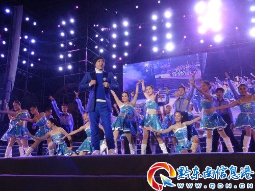 從江本地歌手上臺(tái)聯(lián)串演唱從江原創(chuàng)歌曲(項(xiàng)彬 攝)