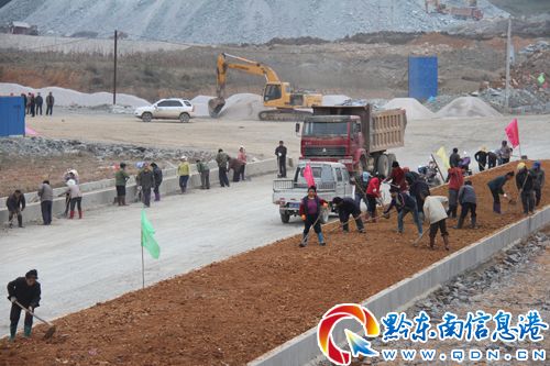 縣委、縣政府在財力、物力和人力等方面全力提供保障,調集縣交通、公路、水利、住建、市政、供電等部門技術人員和設備全部投入道路建設之中,縱向二號路施工單位蘇州科賽集團貴州富泰公司也伸出援助之手,建設日產2000方的大型拌料場支援橫向一號路建設。縣委、縣政府和開發區領導親臨一線、靠前指揮,督促工程進度,及時協調解決施工中出現的困難和問題;開發區全體干部和工程建設者們充分發揚“5+2”、“白+黑”、“晴+雨”的工作精神,加班加點,日夜奮戰在工地上,橫向一號路建設取得了新的進展。