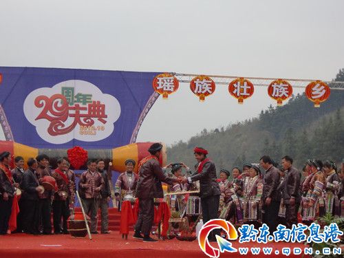 男大當婚,女大當嫁。11月29日,在從江縣翠里瑤族壯族鄉20周年慶典文藝演出中,由該鄉擺翁村上演的“瑤族婚俗展演”,引起眾多來賓熱議,人們稱頌不已。