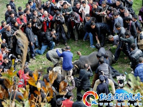 12月6日,是丹寨縣舉行“祭尤節”的第一天。當日晨,苗族同胞齊聚該縣揚頌村祭尤壇上的蚩尤祠,舉行“公祭大典”儀式。數以萬計的苗族同胞從四鄉八寨趕來,與游客一道參加了這一神圣的祭祀活動。