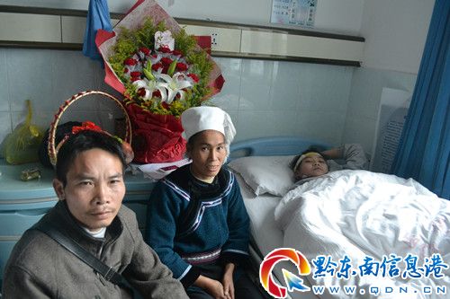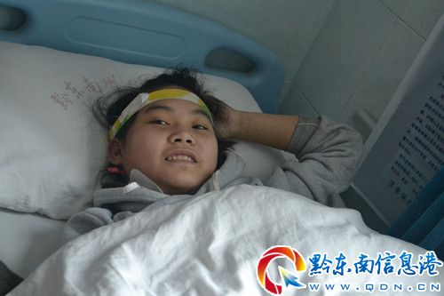 日前,記者在黔東南州人民醫(yī)院三樓7號區(qū)42床采訪到了王海云同學(xué),病房里擠滿了前來看望王海云同學(xué)的親友及榕江一中學(xué)校領(lǐng)導(dǎo)和王海云同學(xué)的班主任。