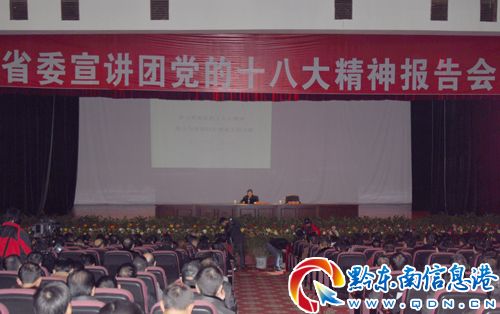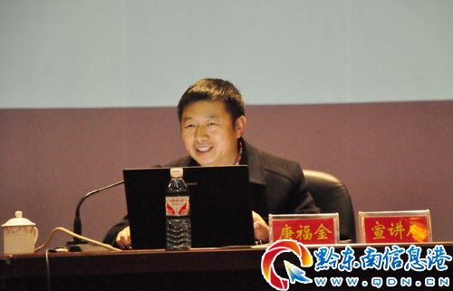 12月11日,省委宣講團黨的十八大精神報告會在凱里行政中心舉行。省委黨的十八大精神宣講團成員、省社科聯黨組書記、副主席唐福金作宣講報告。